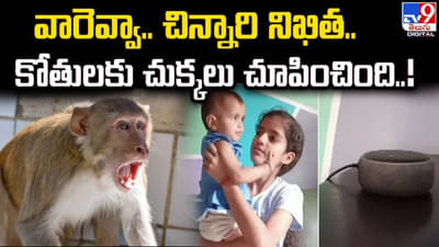 వారెవ్వా.. చిన్నారి నిఖిత.. కోతులకు చుక్కలు చూపించింది