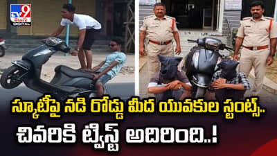 స్కూటీపై నడి రోడ్డు మీద యువకుల స్టంట్స్.. చివరికి ట్విస్ట్ అదిరింది వీడియో