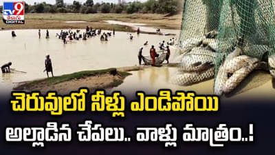 చెరువులో నీళ్లు ఎండిపోయి అల్లాడిన చేపలు.. పండగచేసుకున్న స్థానికులు