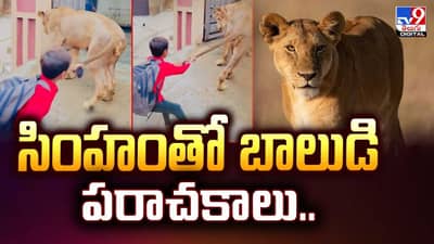 సింహంతో బాలుడి పరాచకాలు.. వీడియో