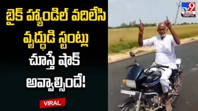 బైక్ హ్యాండిల్ వదిలేసి వృద్ధుడి స్టంట్లు !! చూస్తే షాక్ అవ్వాల్సిందే