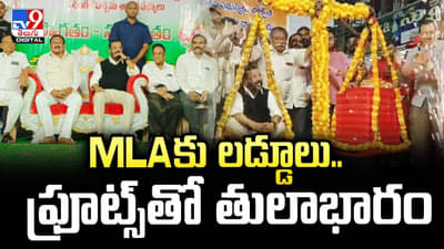 MLAకు లడ్డూలు.. ఫ్రూట్స్ తో తులాభారం