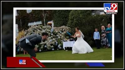 పెళ్లయిన తరువాత వధూవరుల మధ్య చనువు పెంచటానికి వారితో ఆటలు ఆడించటం మామూలే. అయితే విదేశాల్లో అప్పుడే వివాహం జరిగిన ఓ జంటకు.. ఇరు కుంటుంబ సభ్యులు ఓ గేమ్ను నిర్వహించారు. ఆ ఆట కాస్త బెడిసికొట్టి, ఏకంగా వరుడు కిందపడి మరీ..