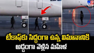 టేకాఫ్కు సిద్ధంగా ఉన్న విమానానికి అడ్డంగా వెళ్లిన మహిళ !!