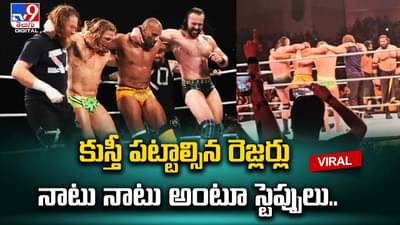 వరల్డ్ రెజ్లింగ్ ఎంటర్ టైన్ మెంట్ పోటీలలో అరుదైన దృశ్యం చోటుచేసుకుంది. రింగ్ లో ప్రత్యర్థిని ఎలా పడగొట్టాలని ఆలోచిస్తూ, పిడిగుద్దులతో విరుచుకుపడే రెజ్లర్లు అదే రింగ్ లో సరదాగా చిందేశారు. మ్యాచ్ ముగిసిన తర్వాత నలుగురు సూపర్ స్టార్లు ఆస్కార్ అందుకున్న పాటకు కాలుకదిపారు. ఆర్ఆర్ఆర్ చిత్రంలోని నాటు నాటు పాటకు అదిరిపోయే స్టెప్పులేసి అభిమానులను అలరించారు. తమ అభిమాన ఫైటర్లు అందరూ ఒకరి భుజాలపై మరొకరు చేతులు వేసి డ్యాన్స్ చేయడం చూసి అభిమానుల ఆనందానికి అవధుల్లేకుండా పోయింది. చప్పట్లతో వేదిక మొత్తం దద్దరిల్లింది. హైదరాబాద్ వేదికగా జరుగుతున్న డబ్ల్యూడబ్ల్యూఈ పోటీలలో ఈ సరదా సన్నివేశం చోటుచేసుకుంది. సూపర్ స్టార్ స్పెక్టాకిల్ తొలి మ్యాచ్ లో భారత స్టార్ రెజ్లర్లు వీర్ మహాన్, జిందర్ మహాల్, సంగా పాల్గొన్నారు. వీరితో వెటరన్ స్టార్లు కెవిన్ ఓవెన్స్, శామీ జేన్, డ్రూ మెకింటైర్ పోటీపడ్డారు. నలుగురి మధ్య జరగాల్సిన ఈ మ్యాచ్.. హైడ్రామాతో ఆరుగురి మధ్య పోటీగా మారింది.