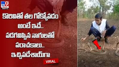 పాములంటే భయపడని వారెవరుంటారు చెప్పండి. కొంతమంది డైరెక్ట్గా చూడకపోయినా పాము పేరు చెబితేచాలు గజగజా వణికిపోతారు. కాగా ఈ మధ్య పాములకు సంబంధించిన పలు వీడియోలు సోషల్ మీడియాలో తెగ చక్కర్లు కొడుతున్నాయి. కొంతమంది స్నేక్ క్యాచర్స్ అలవోకగా వాటిని బంధించిన వీడియోలు నెటిజన్లను బాగా ఆకట్టుకుంటున్నాయి. అయితే పాములు పట్టే స్నేక్ క్యాచర్స్ కొందరు ఇటీవల అదే పాముకాటుకు బలైన విషాద ఘటనలు కూడా వెలుగుచూశాయి. తాజాగా ఒక వ్యక్తి ఒకే సారి 3 నాగుపాములను ఆడించేందుకు ట్రై చేసి.. ప్రమాదంలో పడ్డాడు. మాములుగా అయితే పడగ విప్పిన ఒక నాగుపామును మేనేజ్ చెయ్యడమే కష్టం. అది బుసలు కొడుతూ మీదకు దూసుకుని వస్తుంది. కానీ ఈ కర్ణాటకకు చెందిన ఈ కుర్రోడు.. మాజ్ సయ్యద్.. తన టాలెంట్ ఏంటో చూపేందుకు ఈ ప్రమాదకర స్టంట్ చేశాడు. ఒకేసారి 3 పడగవిప్పిన నాగుపాములతో ఆటలాడాడు. వాటి ముందు కూర్చుని.. వాటిని అటూ, ఇటూ ఆడించాడు. ఇతగాడి ఓవర్ యాక్షన్ భరించలేకపోయిన ఓ స్నేక్.. రివర్స్ పంచ్ ఇచ్చింది. ఒక్కసారిగా అతడి మీదకు దూకి మోకాలిపై కాటు వేసింది. అతడు దాన్ని వదిలించుకునేందుకు చాలా కష్టపడ్డాడు. IFS అధికారి సుశాంత్ నంద ఈ వీడియోను ట్విట్టర్లో షేర్ చేశారు. పాములతో ఇలాంటి ఆటలు ఆడితే ప్రాణాలకే రిస్క్ అని తెలిపారు. ఇలాంటి ఆటలను పాములు తమకు ముప్పుగా భావించి అటాక్ చేస్తాయని వివరించారు. ప్రస్తుతం ఈ వీడియో నెట్టింట తెగ వైరల్ అవుతోంది. దీనిపై నెటిజన్లు రకరకాలుగా స్పందిస్తున్నారు.