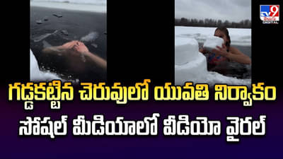 గడ్డకట్టిన చెరువులో యువతి నిర్వాకం.. సోషల్ మీడియాలో వీడియో వైరల్