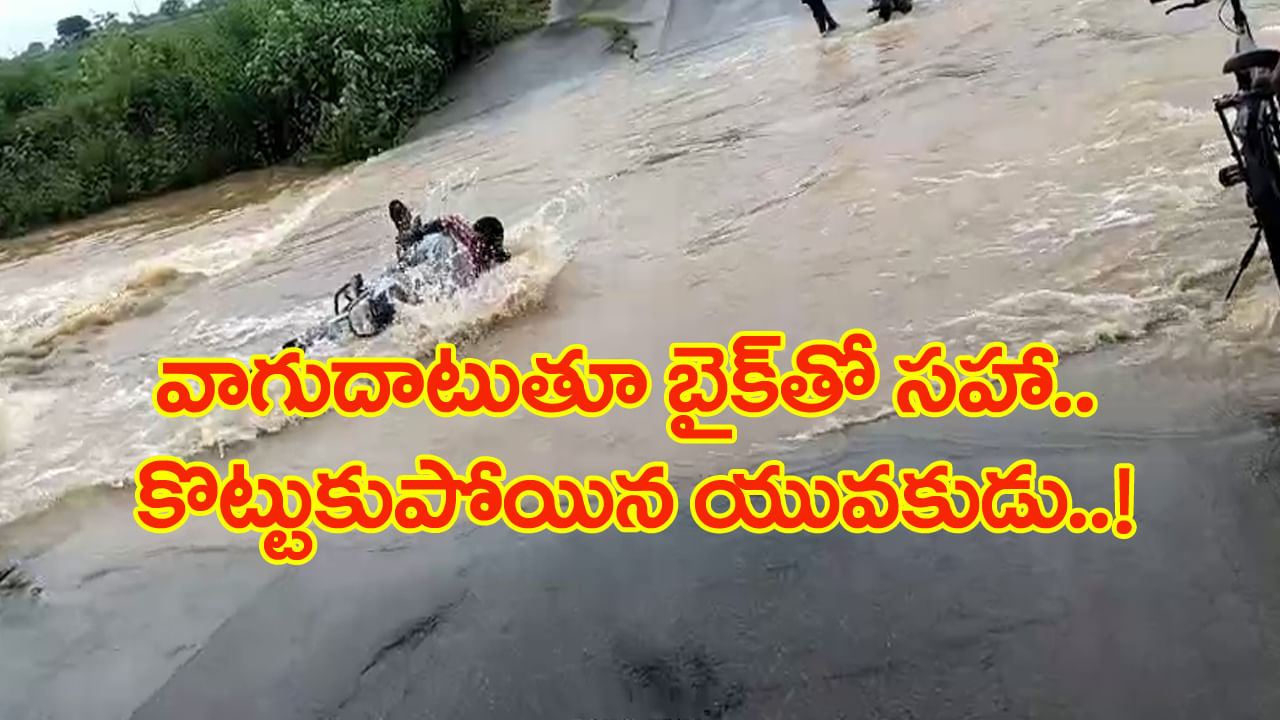 Watch: వాగు దాటుతూ.. బైక్తో సహా కొట్టుకుపోయిన యువకుడు..