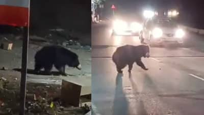 నంద్యాల జిల్లా శ్రీశైలం సమీపంలోని శిఖరేశ్వరం అటవీశాఖ చెక్ పోస్ట్ వద్ద ఎలుగుబంటి కలకలం రేపింది. శిఖరేశ్వరం చెక్ పోస్ట్ పక్కనే ఉన్న అడవిలో ఎలుగుబంటి ప్రత్యేక్షమైంది. రోడ్డుపక్కన యాత్రికులు పడేసిన కొబ్బరి చిప్పలను తినేందుకు వచ్చిన ఎలుగుబంటి యాత్రికుల కంటపడింది. ఎలుగుబంటిని చూసిన యాత్రికులు ఒక్కసారిగా భయాందోళనలకు గురయ్యారు. జనాలు సంచరించే ప్రదేశంలోకి ఎలుగుబంటి రావడమేంటని యాత్రికులు షాక్ అయ్యారు. రాత్రి సమయం కావడంతో ఎలుగుబంటి అడవి నుంచి రోడ్లపైకి వచ్చినట్లు తెలుస్తోంది.