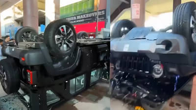 తూర్పు ఢిల్లీలో కొత్త థార్ డెలివరీ రోజే ప్రమాదానికి గురైంది. నిమ్మకాయ తొక్కించే సమయంలో కంగారులో యాక్సిలరేటర్ను గట్టిగా తొక్కడంతో కారు కింద పడిపోయింది. అదృష్టవశాత్తూ ఎయిర్ బ్యాగ్స్ ఓపెన్ కావడంతో మహిళ క్షేమంగా బయటపడింది. అందుకు సంబంధించిన వీడియో వైరల్గా మారింది.