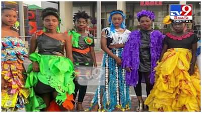 Nigeria: వాడి పడేసిన ప్లాస్టిక్ వ్యర్థాలతో డ్రెస్సులు….!! “ట్రాషన్ షో’ అదుర్స్… ( వీడియో )