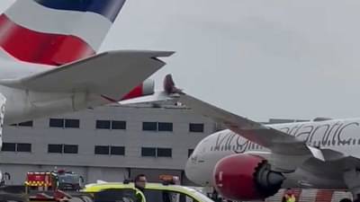 ప్రపంచంలోనే అత్యంత రద్దీగా ఉండే విమానాశ్రయాల్లో ఒకటైన లండన్ హీత్రూ ఎయిర్పోర్టులో ప్రమాదం చోటుచేసుకుంది. రెండు విమానాలు ఒక దానికొకటి ఢీ కొన్నాయి. వర్జిన్ అట్లాంటిక్కు చెందిన బోయింగ్ 787-9 రకం విమానం ప్రయాణం ముగించుకుని మరో ప్రదేశానికి వెళ్తున్న సమయంలో ఈ ఘటన చోటు చేసుకొంది.