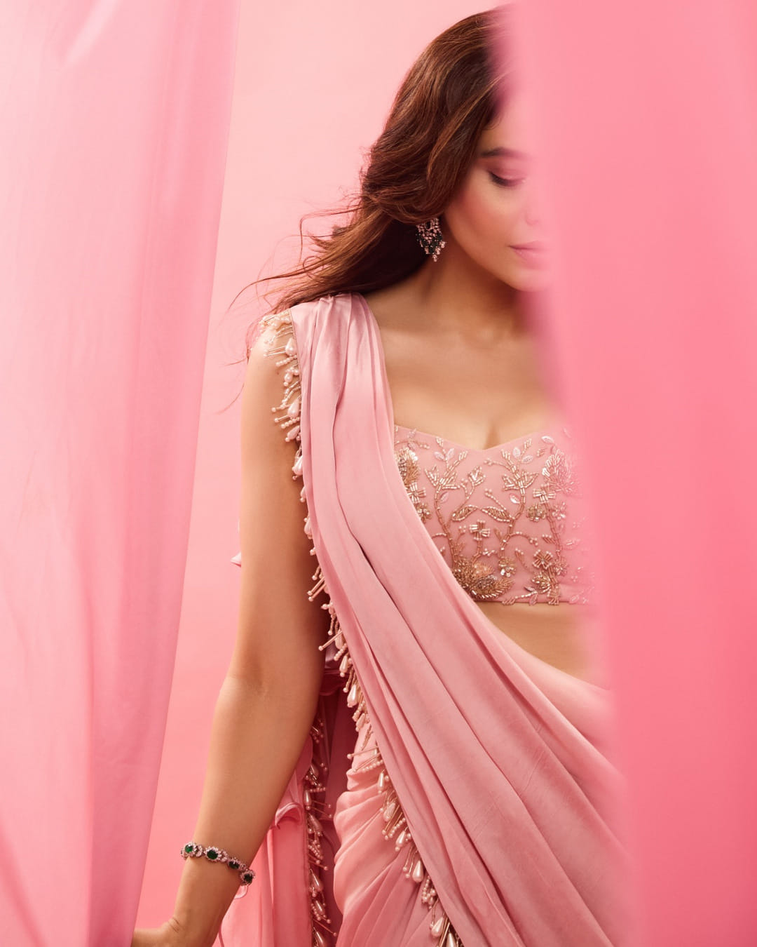 చీరకట్టులో ఆమ్నా షరీఫ్ ధగ ధగలు.. ఫిదా చేస్తున్న ముద్దుగుమ్మ