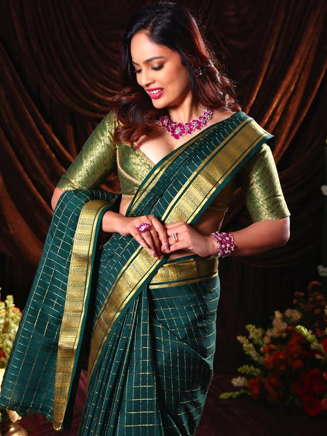 తాజాగా ఈ అమ్మడు షేర్ చేసిన ఫోటోలు మతిపోగొడుతున్నాయి. చీరకట్టులో ఓ రేంజ్ లో అందాలతో కవ్విస్తుంది నందిత.