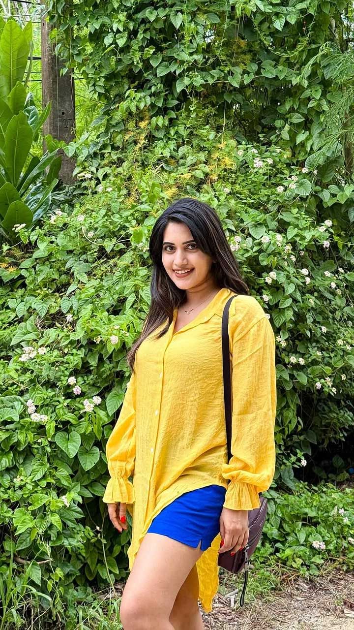ఎల్లో కలర్ డ్రెండీ డ్రెస్ ధరించి తన గ్లామర్తో కుర్రకారును ఆగం చేస్తుంది. తన ఒంపు సొంపులతో అందరినీ మాయ చేస్తుంది.
