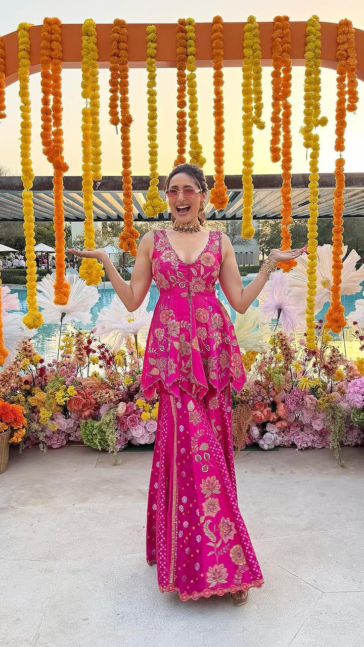 పింక్ కలర్ డ్రెస్లో తన ఫ్రెండ్ హాల్దీవేడుకల్లో సందడి చేసింది. అంతే కాకుండా తన అంద, చందాలతో కుర్రకారు మతి పొగొట్టేస్తుంది.