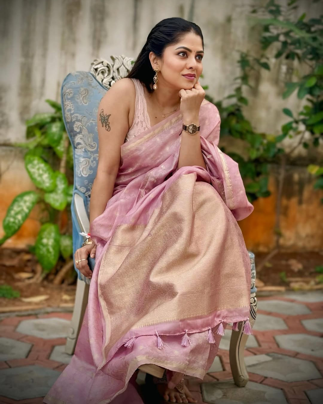 తాజాగా చీరకట్టులో ఈ బ్యూటీ షేర్ చేసే ఫోటోస్ నెట్టింట తెగ ట్రెండ్ అవుతుంటాయి. హీరోయిన్లకు ధీటుగా అందమైన రూపం.. ఫిట్నెస్ తో షాకిస్తుంటుంది.