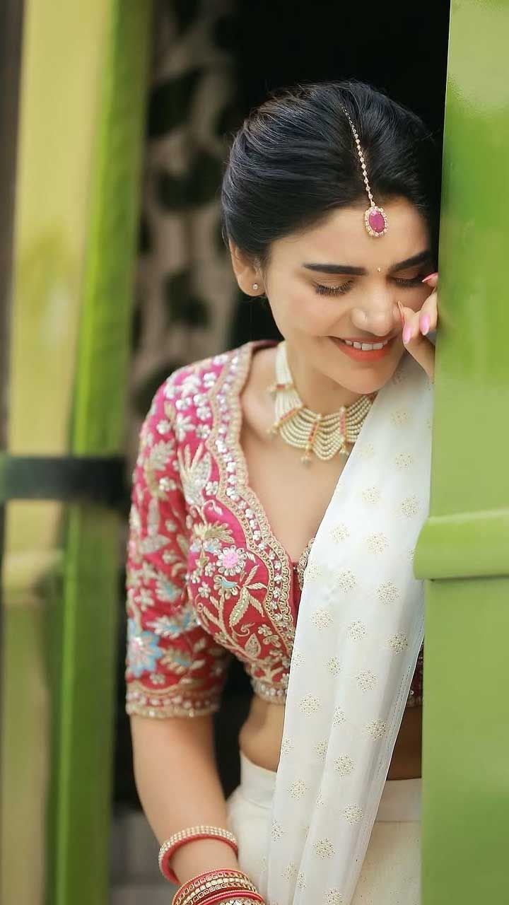 తాజాగా వర్ష ఎంబ్రాయిడరీ వర్క్ డిజైన్ చేసిన మెరూన్ కలర్ బ్లౌజ్ ధరించి, వైట్ కలర్ లెహంగాలో అదరిపోయింది. ఎప్పటిలానే గ్లామర్ విందు ఇస్తూ... ఫొటోలకు ఫోజులిచ్చింది. ఈ పిక్స్ వర్ష తన సోషల్ మీడియాలో పోస్ట్ చేసింది.