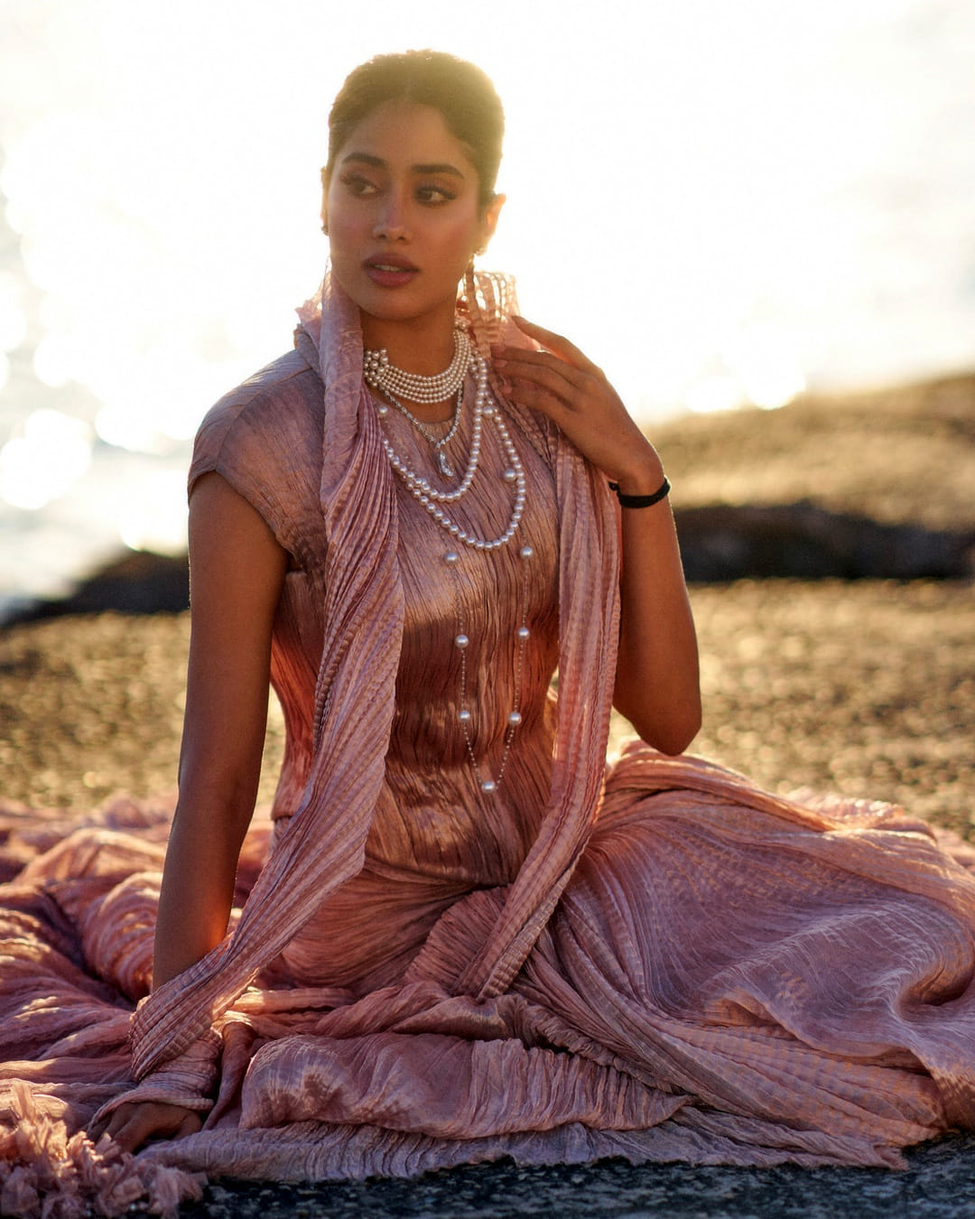 బాలీవుడ్ నటి జాన్వీ కపూర్ కేన్స్ ఫిల్మ్ ఫెస్టివల్లో మంగళవారం రెడ్ కార్పెట్ పై తరుణ్ తహిలియాని డిజైన్ చేసిన రోజ్ కలర్ డ్రెస్ లో మెరిసింది.