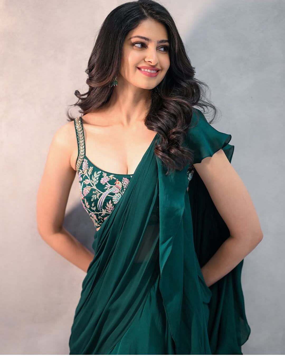 అటు ప్రమోషన్లతో భాగంగా క్రేజీ ఫోటోషూట్లతో సందడి చేస్తుంది. తాజాగా ఈ అమ్మడు గ్రీన్ కలర్ ట్రెండీ సారీ అవుట్ ఫిట్ లో కనిపించింది మానస .