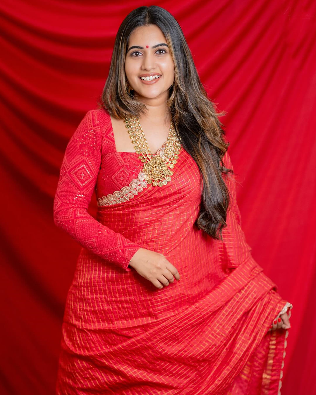 ఎర్ర కోకలో కుర్రకారుకు కిక్కెస్తున్న స్రవంతి.. పిక్స్ మాత్రం మైండ్ బ్లాక్