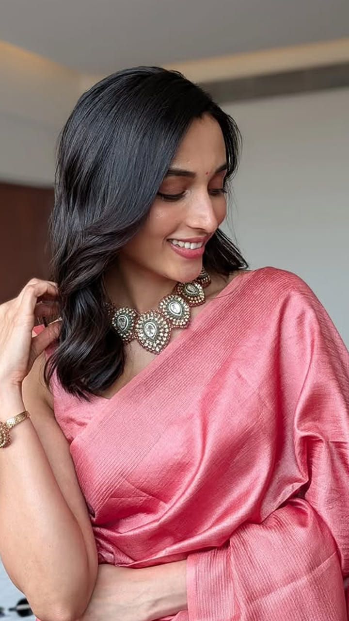 తాజాగా ఈ అమ్మడు లేత గులాబీ చీరలో అందంగా ఉన్న పిక్స్ షేర్ చేసింది. ఇవి నెట్టింట తెగ వైరల్ అవుతున్నాయి.