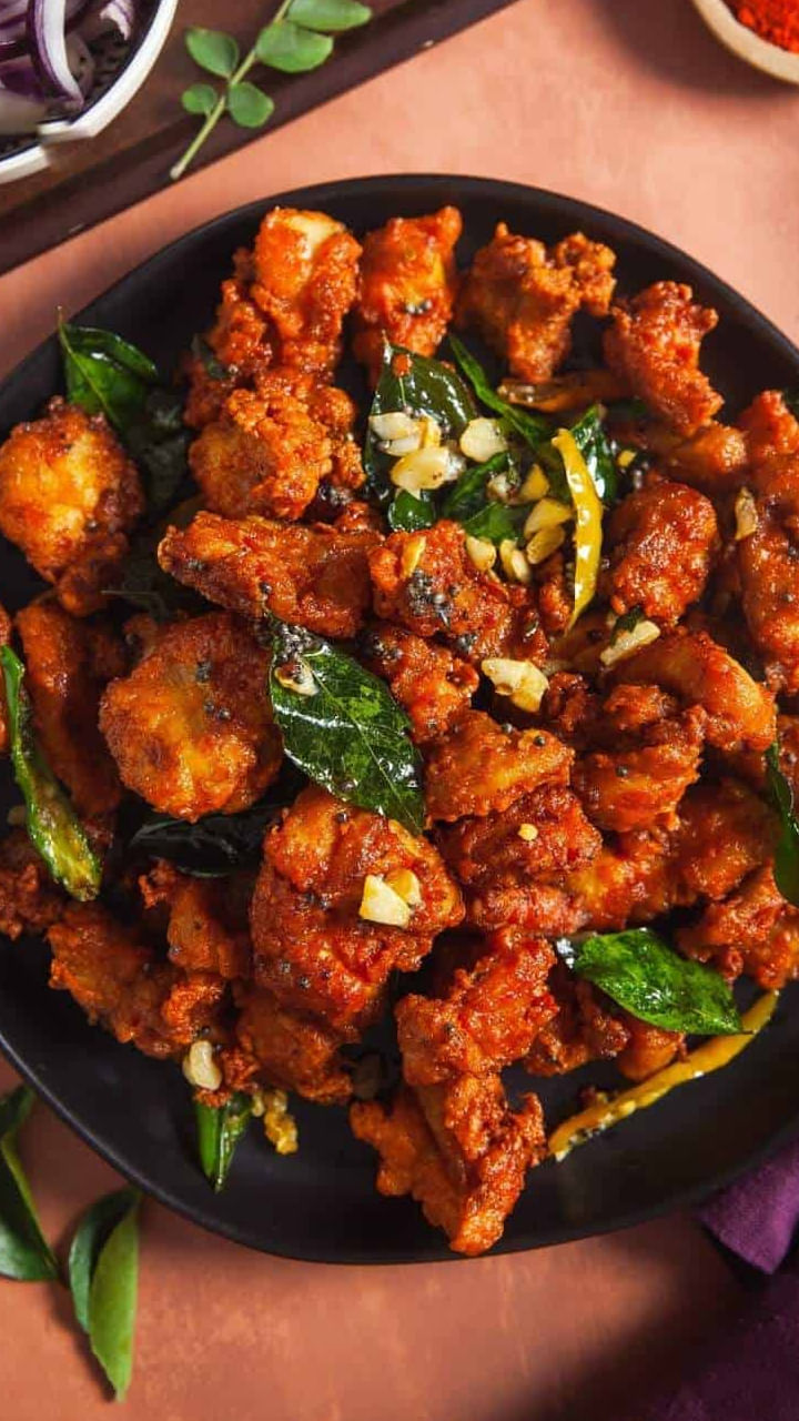 తర్వాత నూనెలో కొద్దిగా కరివేపాకు వేసి పక్కకు తీసుకోవాలి. మనం వేయించి పక్కన పెట్టుకున్న చికెన్ పై కరివేపాకు, ధనియాల పొడి చల్లండి
