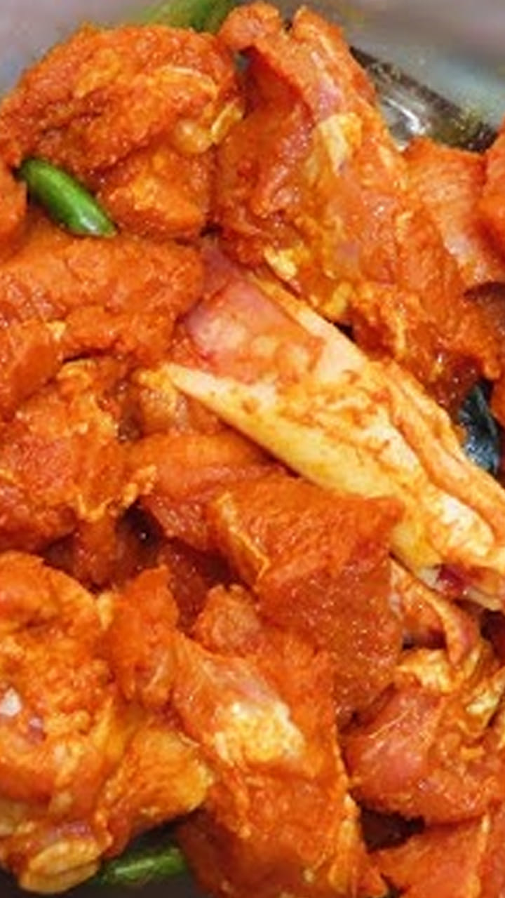 ఇప్పుడు స్టవ్ వెలిగించి మటన్ ముక్కలు వేసి అవి మగ్గిన తర్వాత అర టీ స్పూన్ జీలకర్ర, ఆవాలు, మెంతులు, కరివేపాకు ఆకులు వేసి బాగా వేయించాలి.అవి మగ్గిన తర్వాత ఉల్లిపాయలు, టమాటా ముక్కలు, అల్లం-వెల్లుల్లి పేస్ట్, కొద్దిగా పసుపు, కారం, ఉప్పు వేసి వాటిని బాగా వేయించాలి.