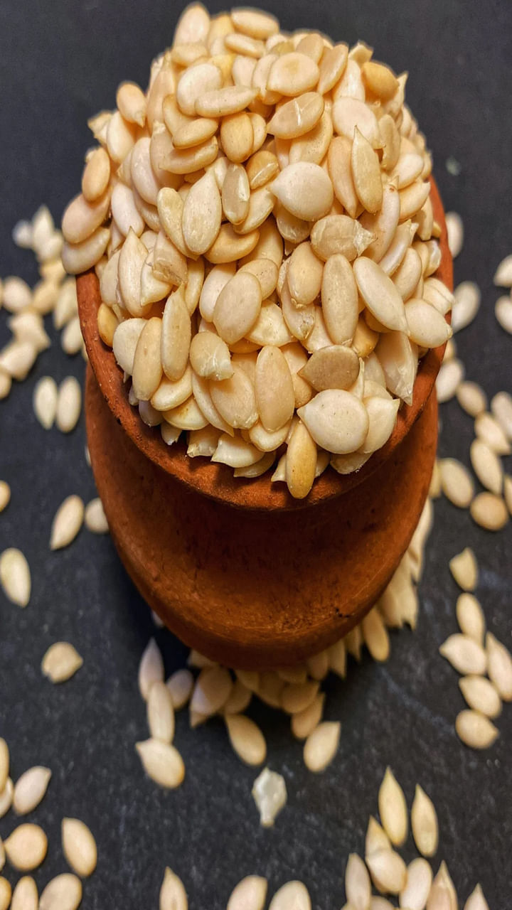 తక్కువ క్యాలరీలు, జింక్, మెగ్నీషియం, పొటాషియం మొదలైన సూక్ష్మపోషకాలను కలిగి ఉంటాయి. పుచ్చకాయ గింజలు రోగనిరోధక శక్తిని,గుండె ఆరోగ్యాన్ని పెంచుతాయి.