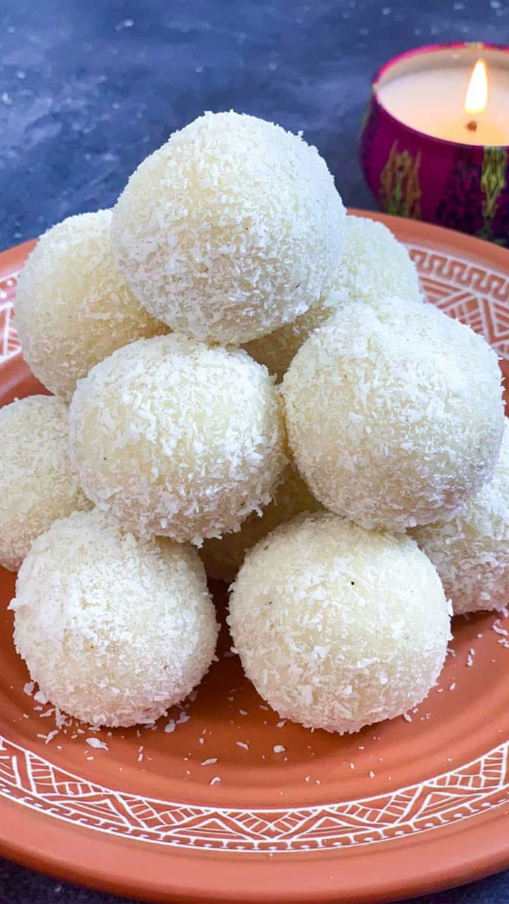 షుగర్ అవసరం లేదు.. టేస్టీ కొబ్బరి లడ్డు ఇంట్లినే సిద్ధం..