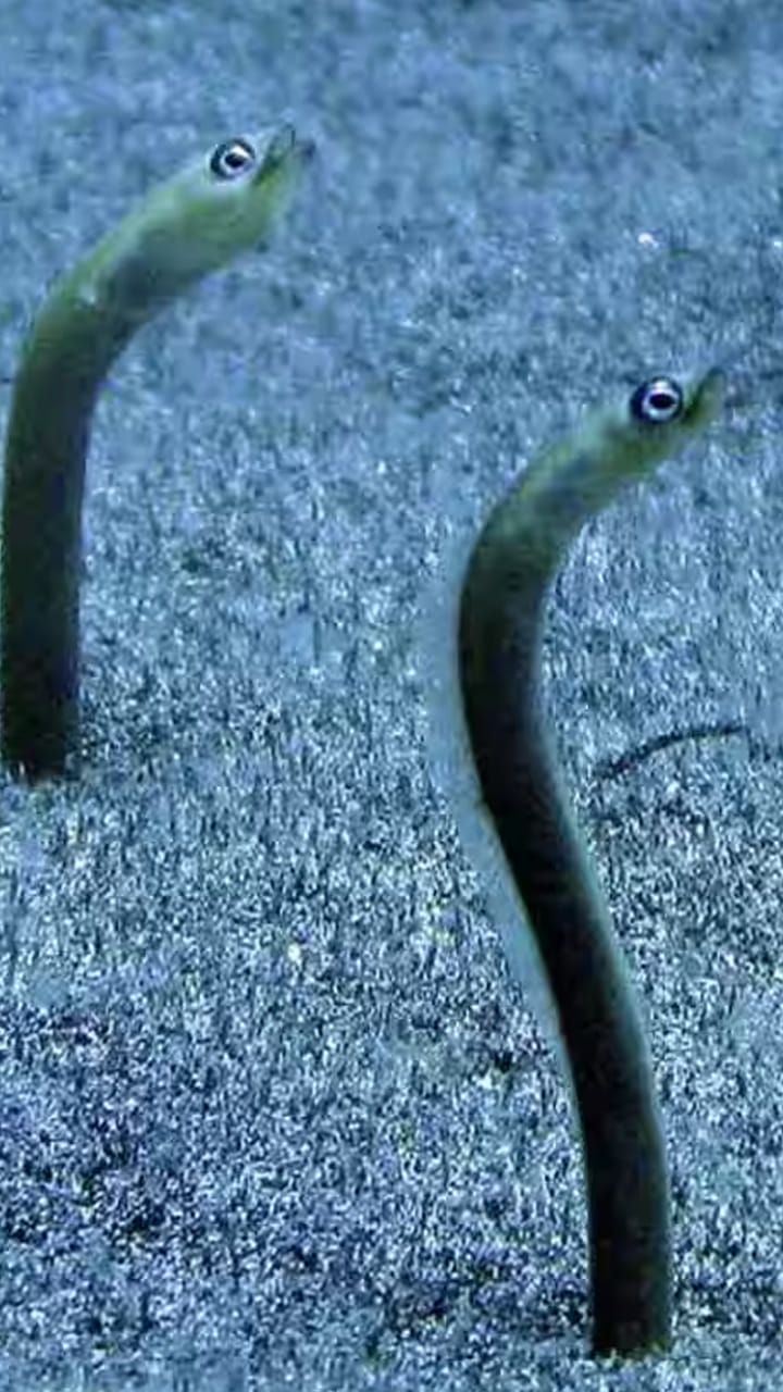 మోరే ఈల్, ఇది చాలా పొడవైన చేప. ఇది రాతి పగుళ్లలో ఎక్కువగా కనిపిస్తుంది. దాని దంతాలు చాలా పదునైనవి , అలాగే ఇది చాలా ప్రకాశవంతంగా కనిపిస్తుంది.