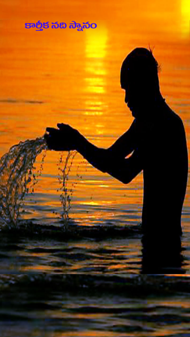 కార్తీక మాసంలో నది స్నానం చేసిన వారికి ఐశ్వర్యం, ఆరోగ్యం, దీర్ఘాయుష్షు లభిస్తాయని, సంతాన భాగ్యం లేని వారికి సంతానం కలుగుతుందని ప్రగాఢ విశ్వాసం, ముఖ్యంగా స్నానం చేస్తూ నీటితో సూర్యుడికి నమస్కారం చేస్తే చాలా పుణ్యం అంట.
