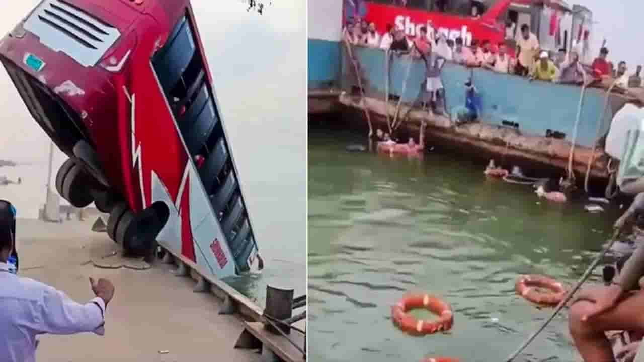 ప్రత్యక్ష సాక్షుల కథనం ప్రకారం, బస్సు ఫెర్రీని సమీపిస్తుండగా, ఒక చిన్న యుటిలిటీ ఫెర్రీ పాంటూన్ను ఢీకొట్టింది. ఈ ధాటికి బస్సు డ్రైవర్ నియంత్రణ కోల్పోవడంతో, బస్సు నేరుగా నదిలోకి దూసుకుపోయింది. కొంతమంది ఈదుకుంటూ బయటపడి సురక్షిత ప్రాంతాలకు చేరుకోగా, చాలామంది ప్రయాణికులు బస్సులోనే చిక్కుకుపోయారు. ఇంకా పలువురు గల్లంతయ్యారు. వారి కోసం గాలింపు కొనసాగుతోంది.