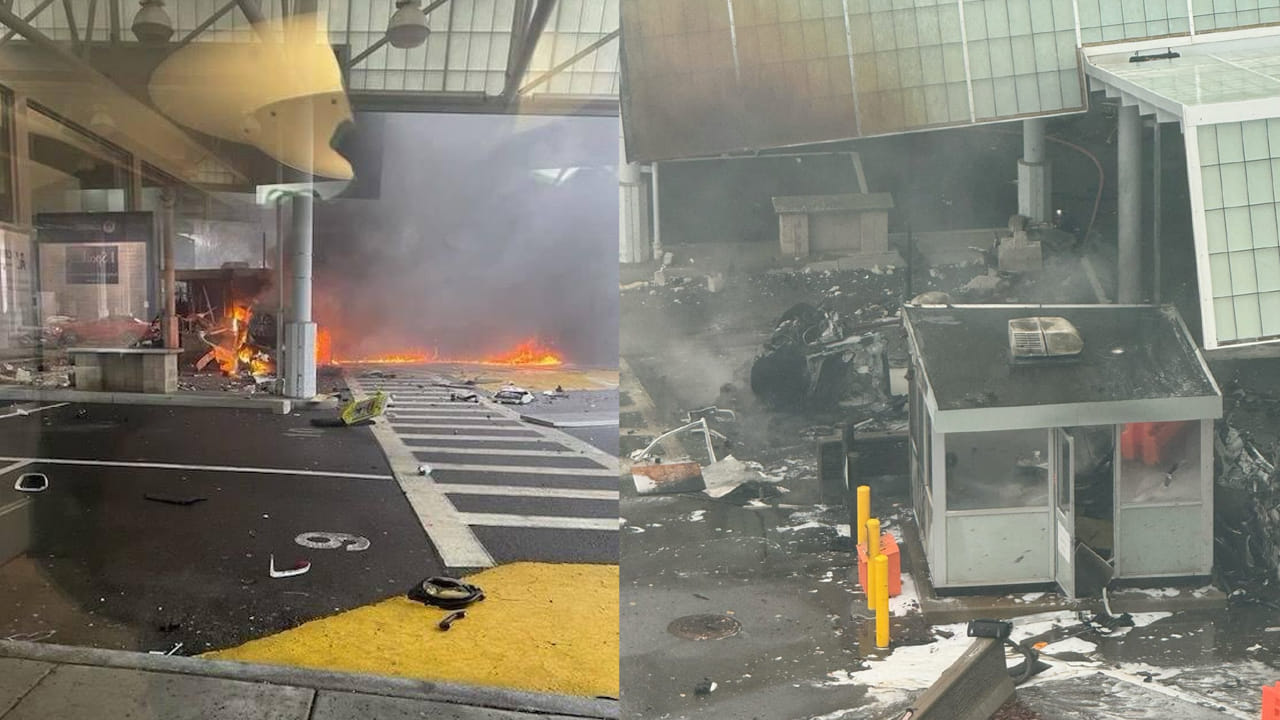 Footage from CCTV Cameras showing the Explosion of a Car at “Rainbow Bridge” Custom’s Checkpoint in Niagara Falls on the Border between Canada and the United States after the Vehicle can be seen Striking a Curb and going Airborne; the Incident was initially believed to have… pic.twitter.com/OirbU4M8JY