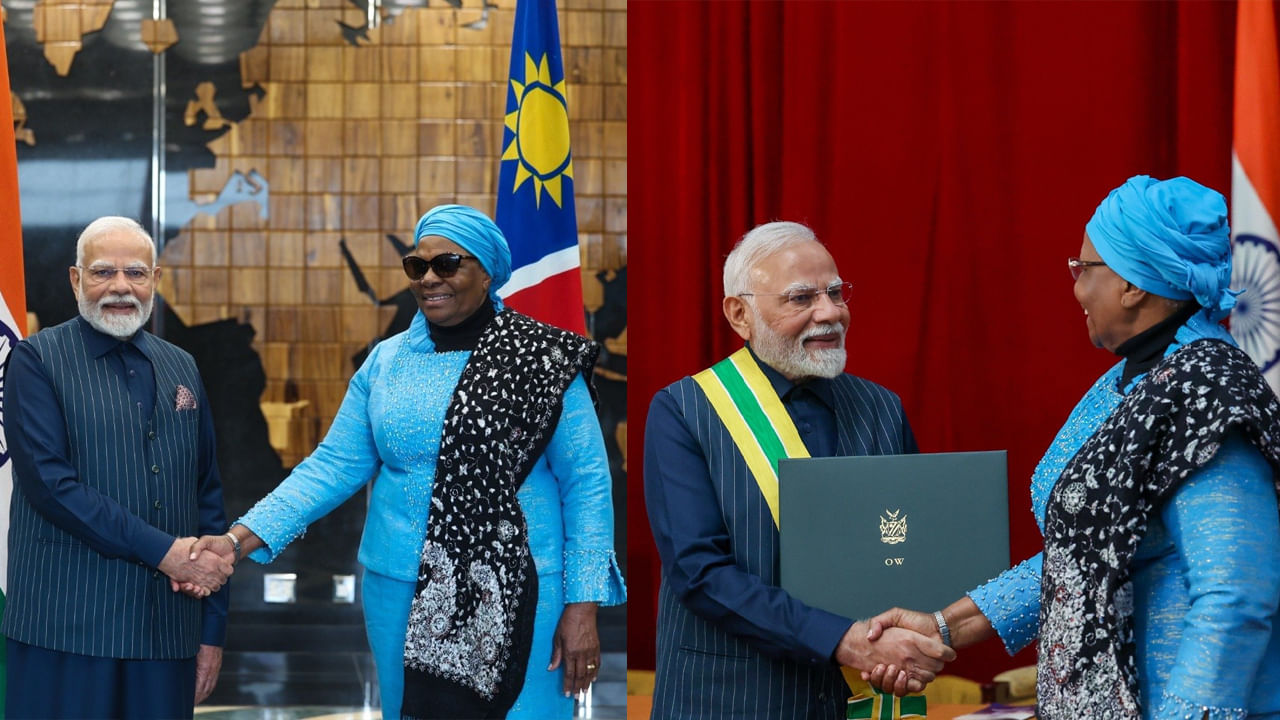 VIDEO | Windhoek: Prime Minister Narendra Modi (@narendramodi) received Namibia’s highest civilian honour — The Order of the Most Ancient Welwitschia Mirabilis. Namibian President Dr. Netumbo Nandi-Ndaitwah (@SWAPOPRESIDENT) conferred the award during a formal ceremony.