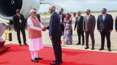 బ్రిటన్ పర్యటనలో భాగంగా ఆ దేశంతో స్వేచ్ఛా వాణిజ్య ఒప్పందం కుదుర్చుకున్న తర్వాత, ప్రధాని మోదీ, లండన్ నుంచి మాల్దీవులకు చేరుకున్నారు. రెండు రోజుల పర్యటనలో భాగంగా శుక్రవారం ఆ దేశంలో ల్యాండ్ అయిన ప్రధాని మోదీకి ఆదేశ అధ్యక్షుడు మహ్మద్ ముయిజ్జు, విదేశాంగ, రక్షణ, ఆర్థిక, హోంశాఖ మంత్రులు ఎయిర్పోర్టులో ఘన స్వాగతం పలికారు.