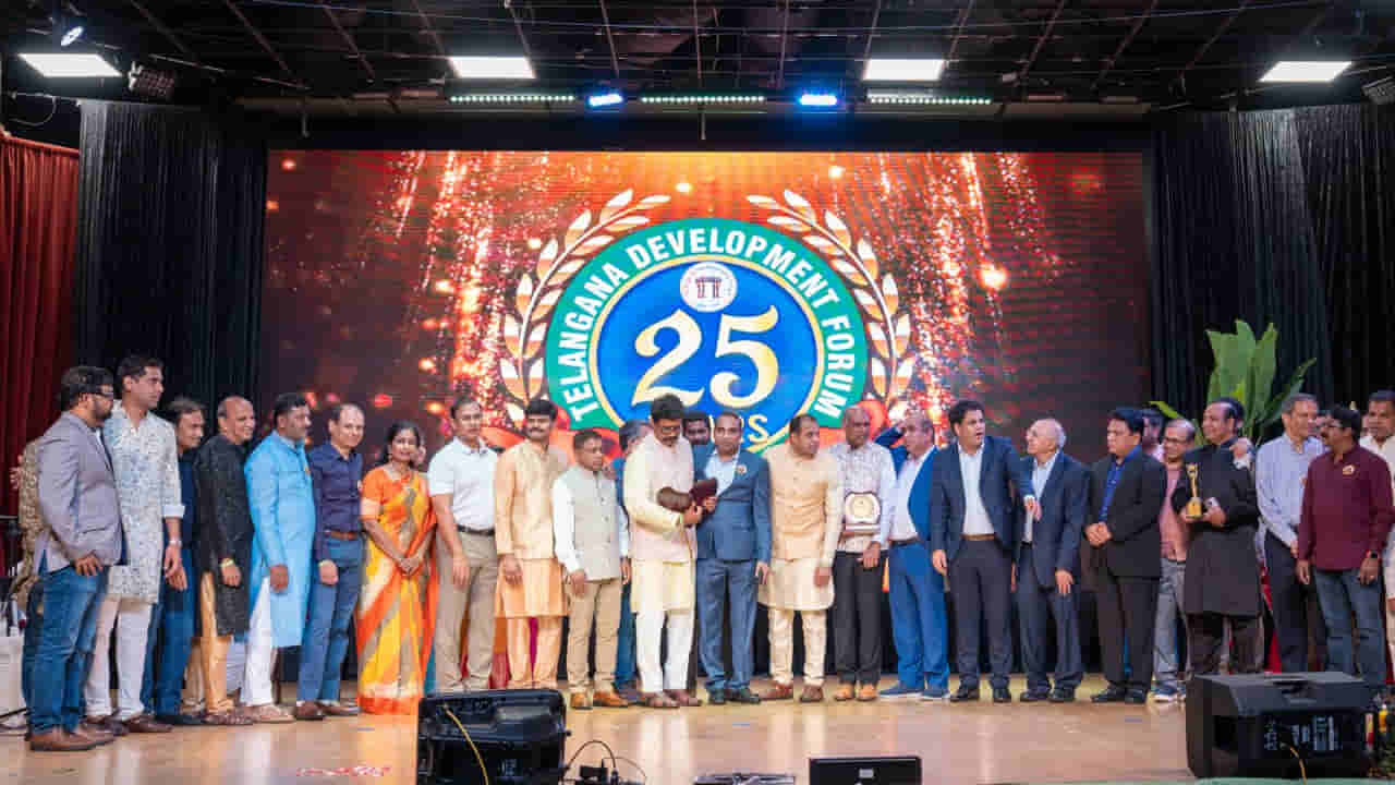 మిల్పిటాస్ (కాలిఫోర్నియా): తెలంగాణ అభివృద్ధి, సంక్షేమం కోసం 25 ఏళ్లుగా విశేష సేవలందిస్తున్న తెలంగాణ డెవలప్మెంట్ ఫోరమ్ (TDF) USA రజతోత్సవ వేడుకలు అంగరంగ వైభవంగా జరిగాయి. కాలిఫోర్నియాలోని మిల్పిటాస్ ఇండియా కమ్యూనిటీ సెంటర్లో ‘ ప్రగతి తెలంగాణం’ పేరిట ఈ వేడుకలు నిర్వహించారు. ఈ వేడుకల్లో తెలంగాణ ఫోక్ నైట్, ఆటా పాటలు, బోనాల వేడుకలు ఆహూతులను అలరించాయి. తెలంగాణ సాంస్కృతిక వైభవాన్ని ప్రతిబింబించిన ఈ కార్యక్రమాల్లో యాంకర్ వాణి గడ్డం తెలంగాణ యాసతో ప్రత్యేక ఆకర్షణగా నిలిచారు. కార్యక్రమానికి ఇండియా నుంచి ముఖ్యమంత్రి రేవంత్ రెడ్డి శుభాకాంక్షలు పంపగా, ఎమ్మెల్సీ ప్రొఫెసర్ ఎం. కోదండరామ్, విద్యాశాఖ కమిషన్ చైర్మన్ ఆకునూరి మురళి, మాజీ ఎంపీ ఆత్మచరణ్ రెడ్డి, సాన్ఫ్రాన్సిస్కో భారత కాన్సుల్ జనరల్ డా. కే. శ్రీకర్ రెడ్డి, ఎంవీ ఫౌండేషన్ నేషనల్ కన్వీనర్ వెంకటరెడ్డి, టెక్నికల్ ఎడ్యుకేషన్ మాజీ డైరెక్టర్ డా. ఎం.వి. రెడ్డి, ‘ఆటా’ అధ్యక్షుడు జయంత్ చల్లా తదితరులు హాజరయ్యారు.