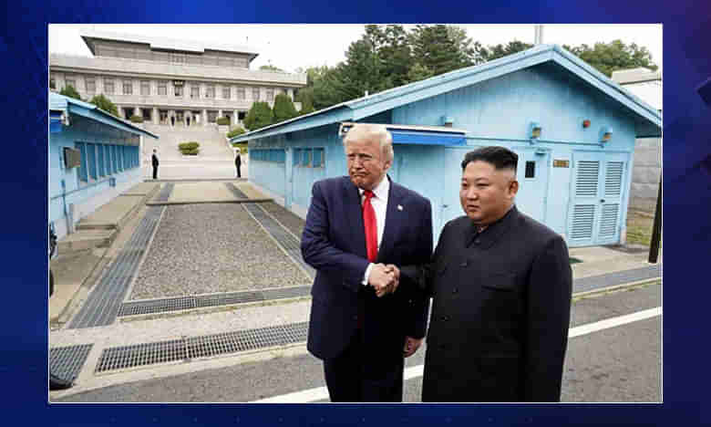 అమెరికా, నార్త్ కొరియా మధ్య ఇన్నాళ్లూ పచ్ఛగడ్డి వేస్తే భగ్గుమంటూ ఉండేది.. ఇరు దేశాల అధ్యక్షులు ట్రంప్, కిమ్ ఒకరిపై ఒకరు కత్తులు నూరుకుంటూ వచ్ఛేవారు. ఒక దశలో రెండు దేశాల మధ్య వార్ సూచనలు కూడా కనిపించాయి. కానీ ఇప్పుడు పరిస్థితి మారిపోయింది. ట్రంప్, కిమ్ ఇద్దరూ స్నేహ హస్తాన్ని చాటుకుంటున్నారు. ట్రంప్.. తమ దేశాలను వేరు చేస్తున్న నార్త్, సౌత్ కొరియన్ టెరిటరీ కాంక్రీటు బ్లాకులను దాటుకుని కిమ్ ని కలుసుకున్నారు. అందులోనూ డీమిలిటరైజ్డ్ జోన్ లో వీళ్ళిద్దరూ చేతిలో చెయ్యి వేసుకుని నడుచుకుంటూ కెమెరాలకు పోజులిచ్చారు. ఇదొక చరిత్రాత్మక పరిణామం. అమెరికా అధ్యక్షుడు నార్త్ కొరియాను విజిట్ చేయడం ఇదే మొదటిసారి. కిమ్ తో చేతులు కలిపిన ట్రంప్.. ఈ నిస్సైనికీకరణ రేఖ వద్ద తాను ఉండడం గర్వకారణమని అన్నారు. వీరిద్దరితోను దక్షిణ కొరియా అధ్యక్షుడు మూన్-జే-ఇన్ భేటీ కావడం విశేషం. కాగా-ఇది ప్రపంచానికే గొప్ప దినమని, ఇక్కడికి రావడం తనకు గౌరవప్రదమే కాక.. ఈ దేశంలో ఎన్నో అద్భుతమైన పనులు జరుగుతున్నాయని ట్రంప్ చమత్కరించారు.