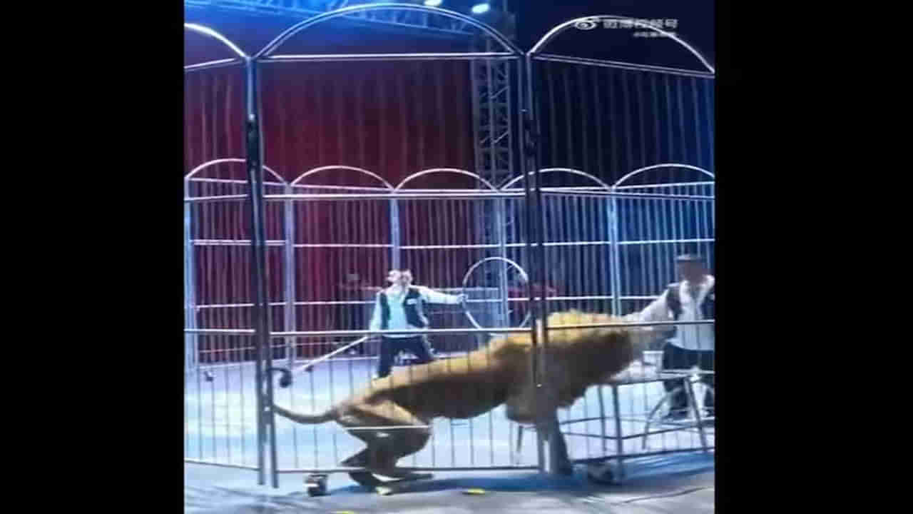 చైనాలో ప్రత్యక్ష ప్రదర్శన సందర్భంగా రెండు సర్కస్ సింహాలు తమ ఎన్క్లోజర్ నుండి తప్పించుకున్న వీడియో వైరల్గా మారింది. సెంట్రల్ చైనాలోని హెనాన్ ప్రావిన్స్లో ఈ కార్యక్రమం జరుగుతుండగా, సింహాలు బయటకు దూకడంతో ప్రేక్షకుల్లో తీవ్ర భయాందోళనలు నెలకొన్నాయి. సర్కస్లో పనిచేస్తున్న శిక్షకులు, పెంపకందారులు వారి వారి పిల్లులను పట్టుకుని ప్రాణభయంతో పరుగులు తీశారు. అదృష్టవశాత్తు ఎవరికీ ఎటువంటి గాయాలు కాలేదని తెలిసింది. ఈ సర్కస్ ఏర్పాటు చేసిన ఎన్క్లోజర్లో నిర్వాహకులు సింహాలతో విన్యాసాలు చేసేందుకు ప్రయత్నించారు. ఈక్రమంలో ఓ రింగ్ లోంచి దూకేందుకు సింహాలు మొరాయించడంతో వాటితో బలవంతంగా విన్యాసాలు చేయించేందుకు ట్రైనర్లు ప్రయత్నించారు. ఆ సమయంలో ఎన్క్లోజర్లో సరిగా లాక్ చేయని డోర్ నుంచి రెండు సింహాలూ ఒక్కసారిగా బయటకు దూకాయి. దీంతో గ్యాలరీల్లో కూర్చొని వీక్షిస్తున్న జనానికి ఏం చేయాలో తెలియక భయంతో కేకలు వేస్తూ బయటకు పరుగులు పెట్టారు. దీంతో ఆ ప్రాంతమంతా అరుపులు, కేకలతో దద్దరిల్లింది. అప్రమత్తమైన నిర్వాహకులు ఆ సింహాలను త్వరగా పట్టుకొని తిరిగి బోనులో బంధించారు.